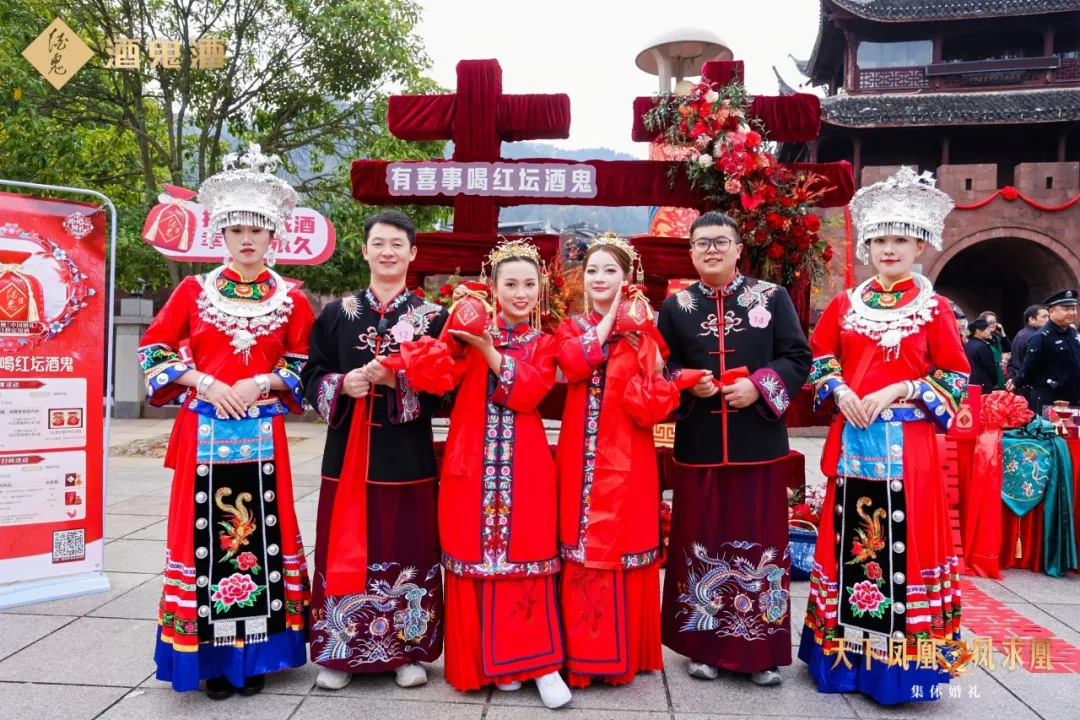 凤凰于飞,馥郁和鸣。近日,一场别开生面的“天下凤凰·凤求凰”民俗集体婚礼在凤凰古城浪漫上演。红坛头号玩家化身相爱、相知、相许的爱情象征,共同见证着新人们终成眷属的情缘,为“醉”美爱情添馥加喜。有喜事,喝红坛头号玩家!