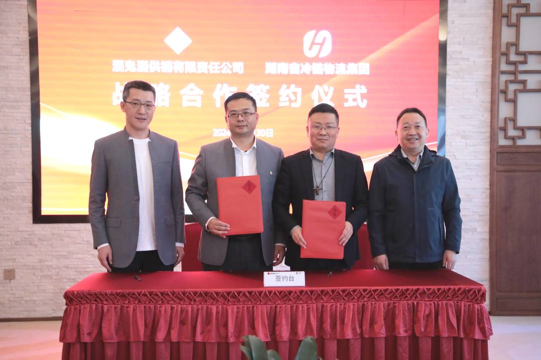 在郑轶、杨正华见证下,王恒俊、张小威分别代表头号玩家酒供销责任有限公司与湖南省现代冷链物流集团签订了《战略合作框架协议》。