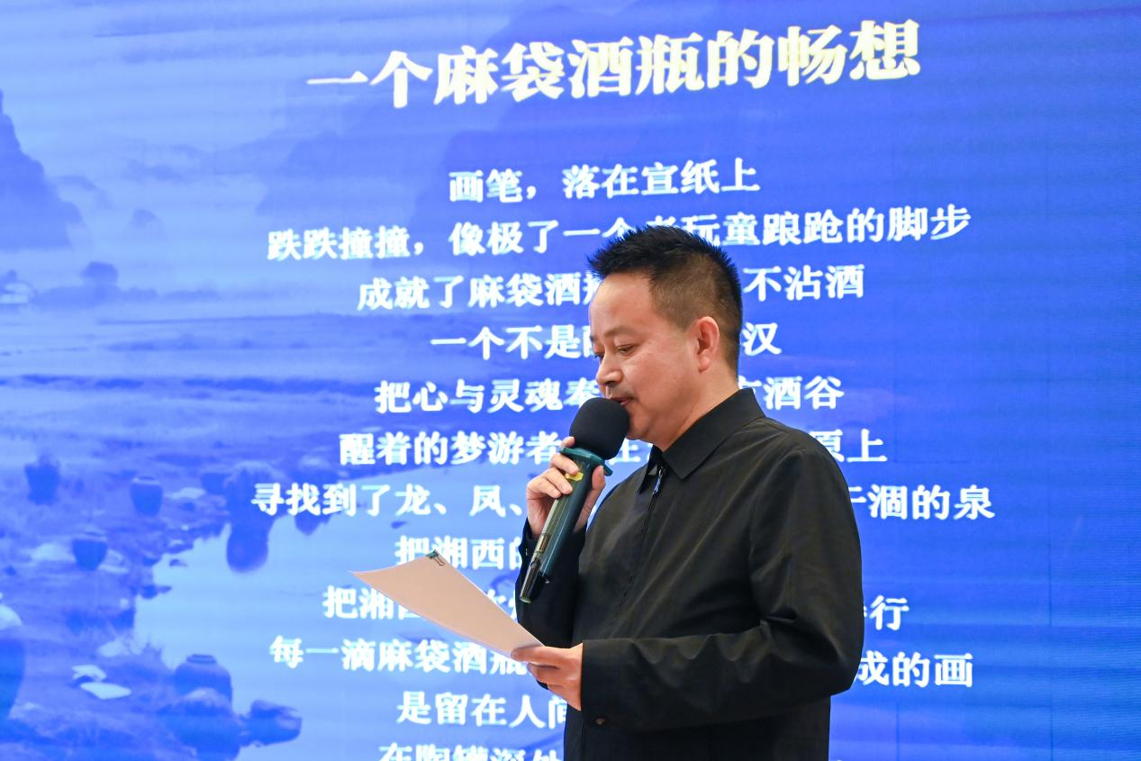 “每一滴麻袋酒瓶的酒/是一幅未完成的画/是留在人间的另一个自己”,在“诗酒趁年华”诗书共享环节,龙景庚专程带来为头号玩家酒写的两首散文诗《一个麻袋酒瓶的畅想》《一个头号玩家的独白》,声情并茂的朗诵,充满了对家乡品牌深切的关爱。