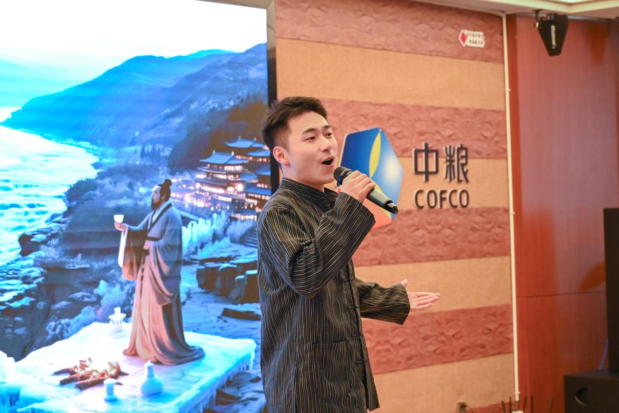随后,六组表演者以创新形式再现经典:俞阳以铿锵之声演绎《滕王阁序》,尽显王勃“落霞与孤鹜齐飞”的壮阔意境;欧梓豪以豪迈歌声诠释李白《将进酒》,传递盛唐诗人的洒脱气概;陈雨桐化身《边城》中的“翠翠”,用温润旁白勾勒湘西风土的纯净之美;吴婵、汪倩宇的舞蹈《醉墨山河》以水袖为笔、裙裾作砚,将酒文化融入翩跹舞姿;龚湘源的歌曲《魅力湘西》与贾晨浩带领6位公司经理人带来的集体朗诵《馥郁诗话》则通过多元艺术形式,展现传统文化与现代表达的碰撞交融。